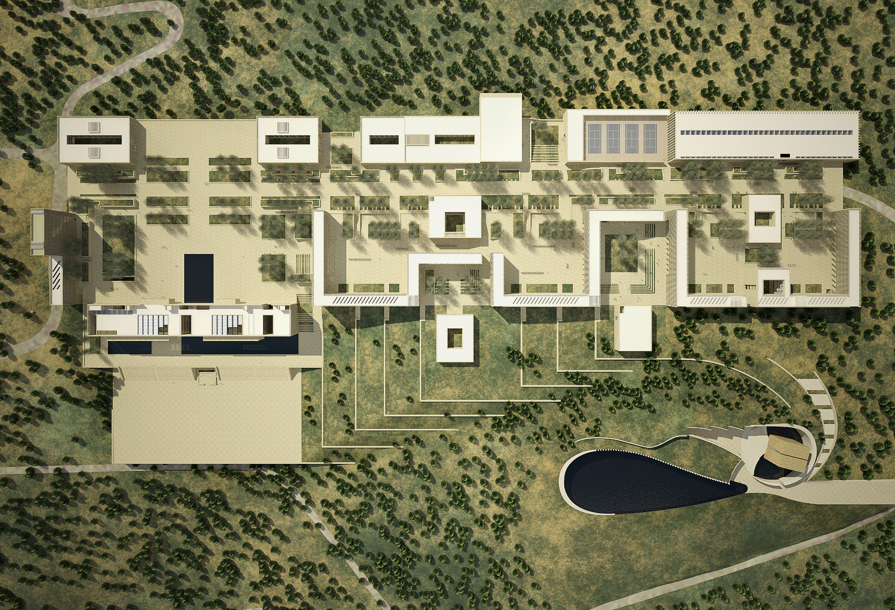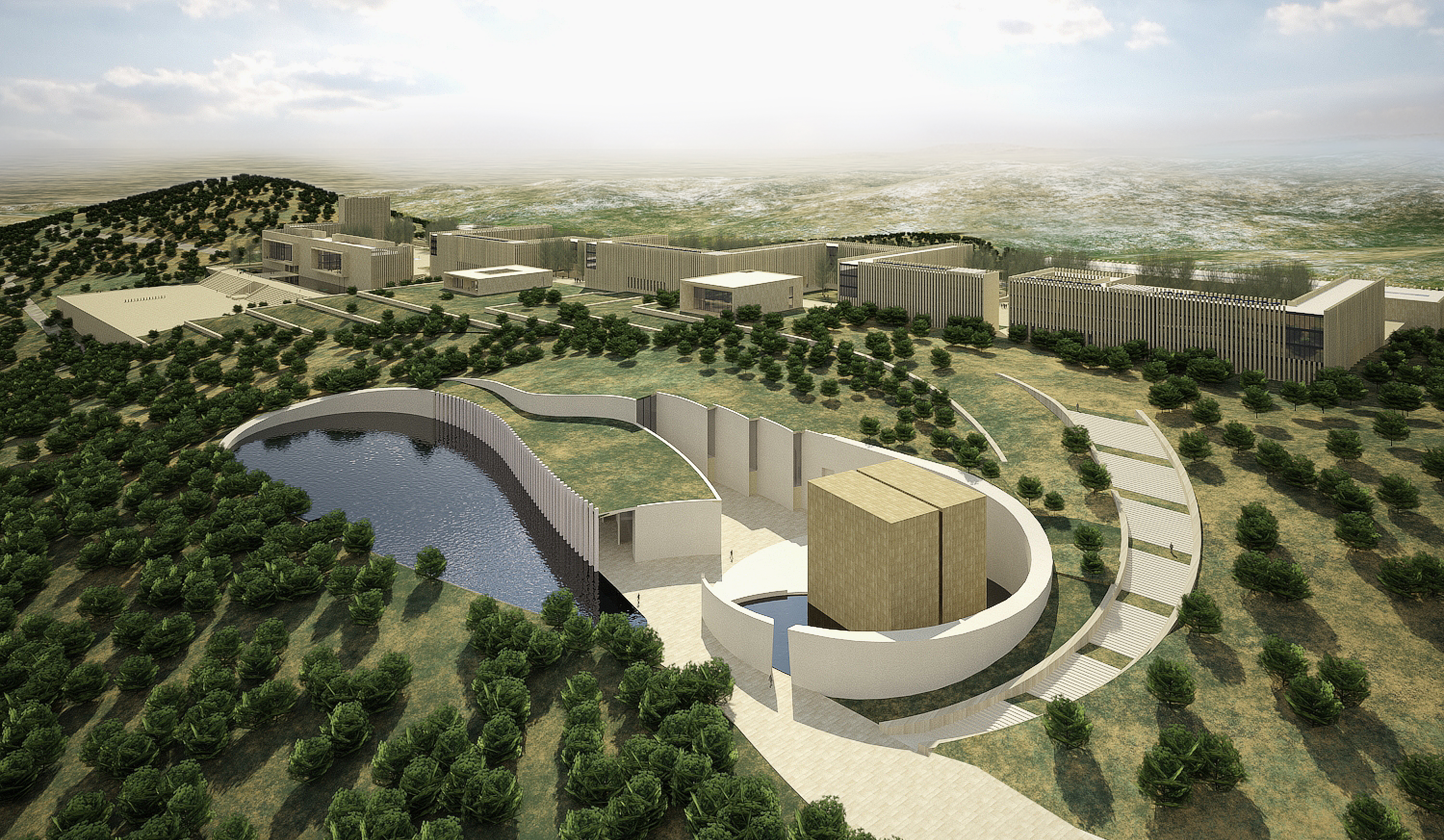 Managing the design and development of the Concept idea designed by the architect / Kerry Hill of the Royal Military Academy. The project site is in Barqash / Ajloun area, with an area of 110000 m 2, and it consists of different types of buildings to restore all service facilities, now and in the future, as follows: